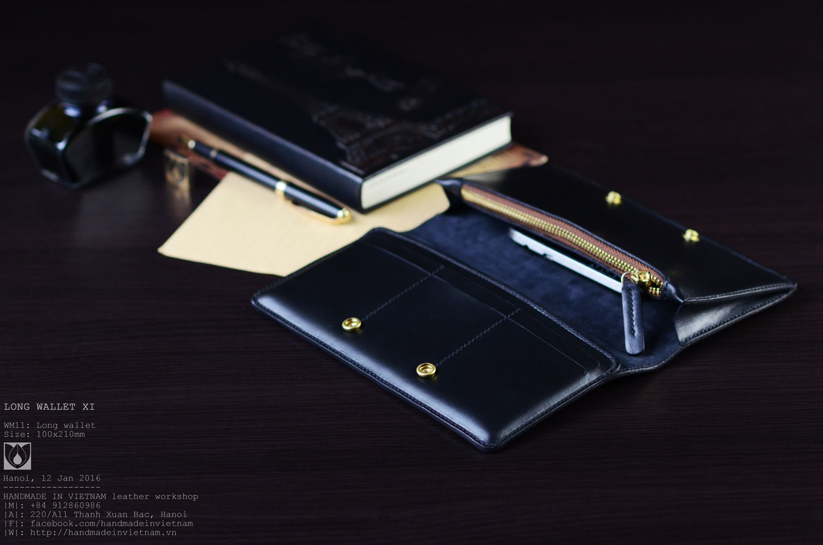 Long wallet for men | Black | 100 x 210 mm